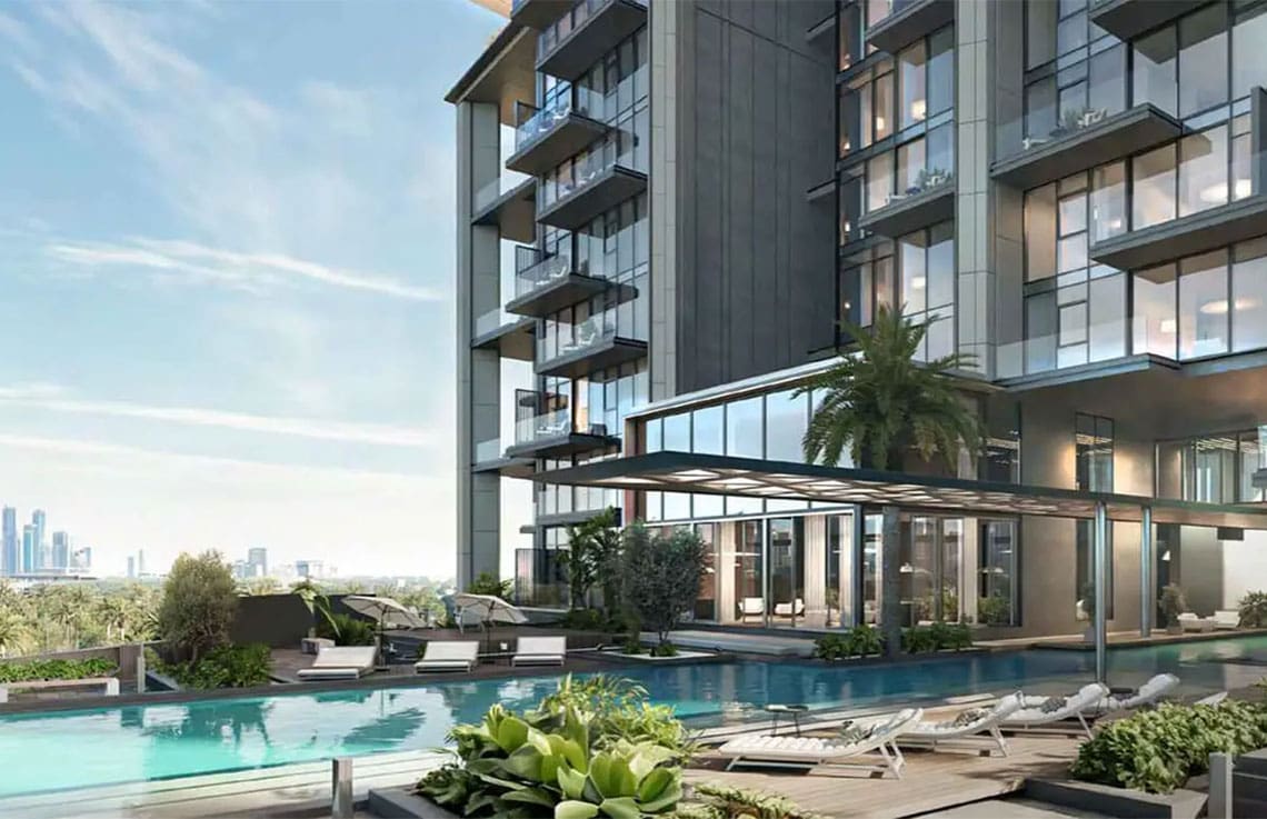 Resort-style amenities including swimming pools, fitness facilities, and landscaped social spaces