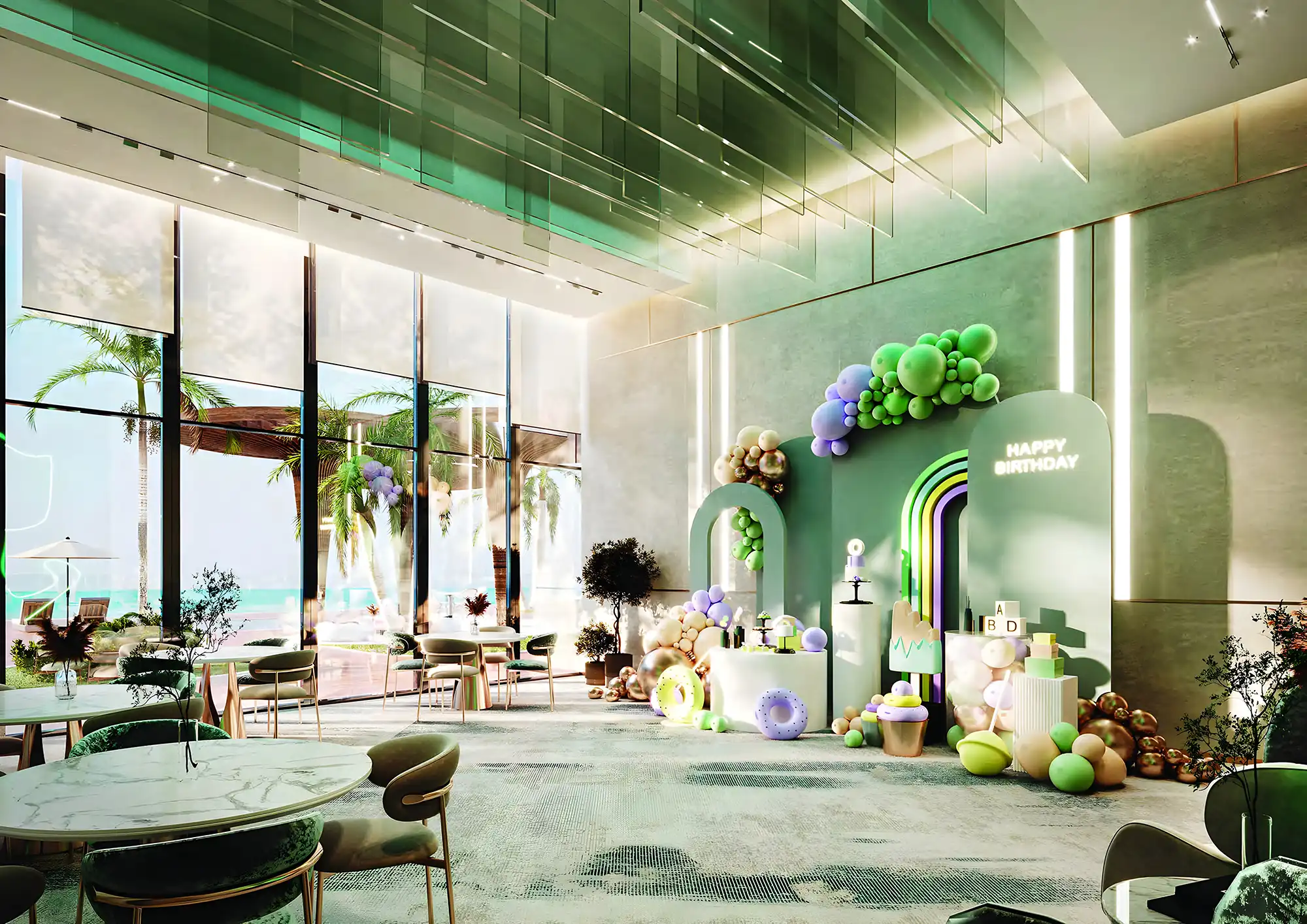 Modern Amenities – Rooftop infinity pool, gym, cinema, BBQ zones, zen garden, padel and mini golf courts.