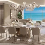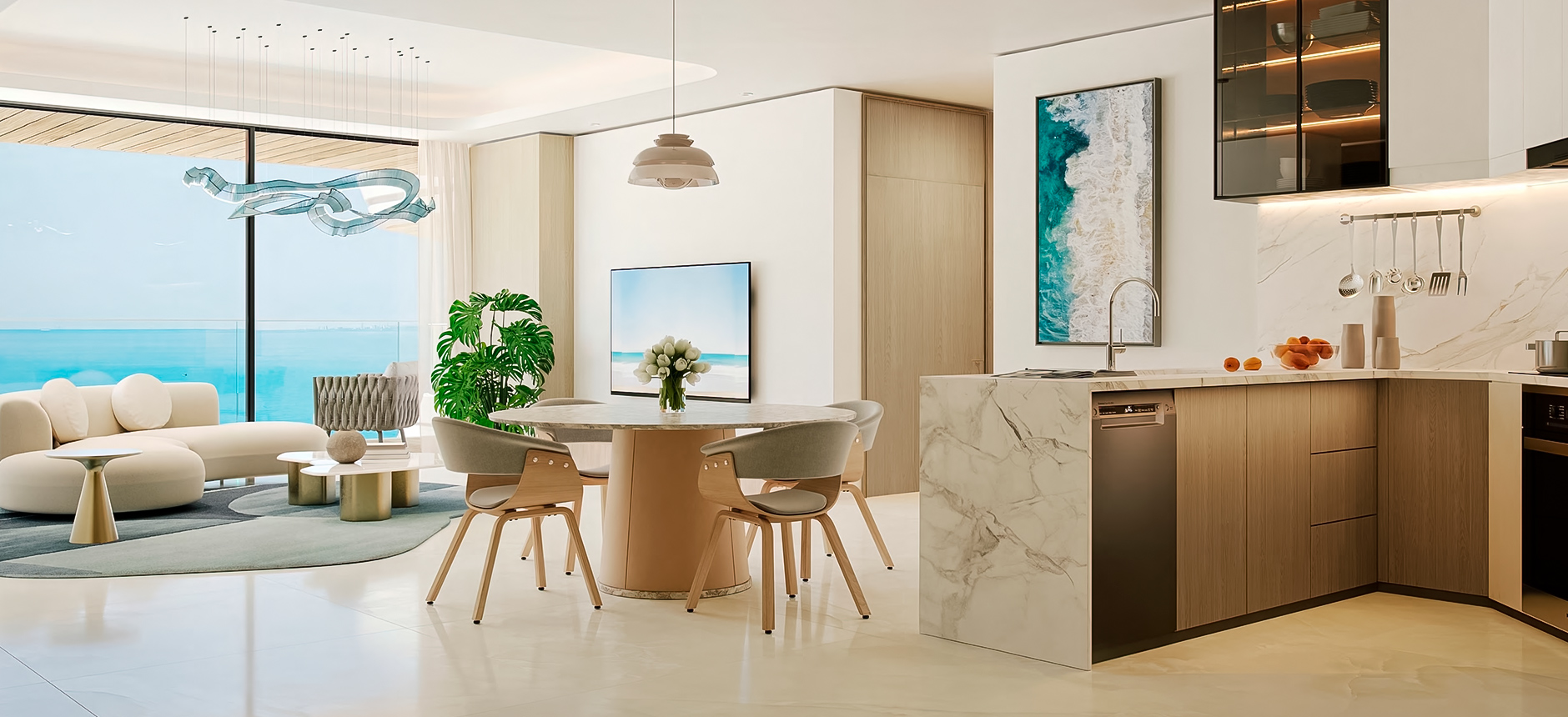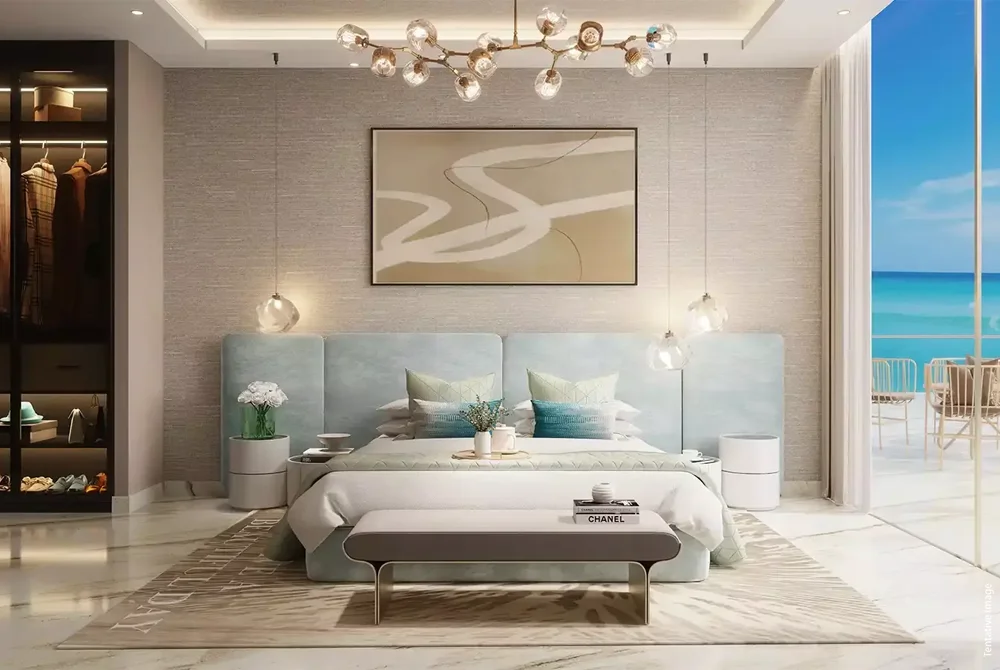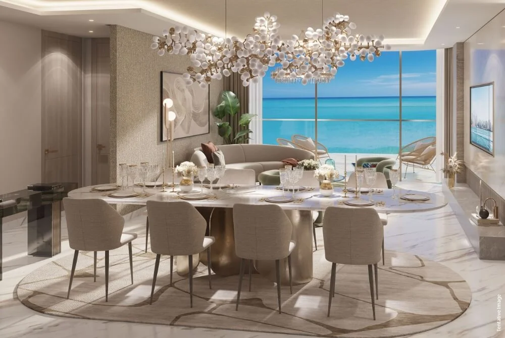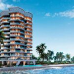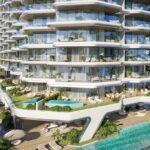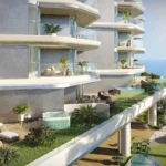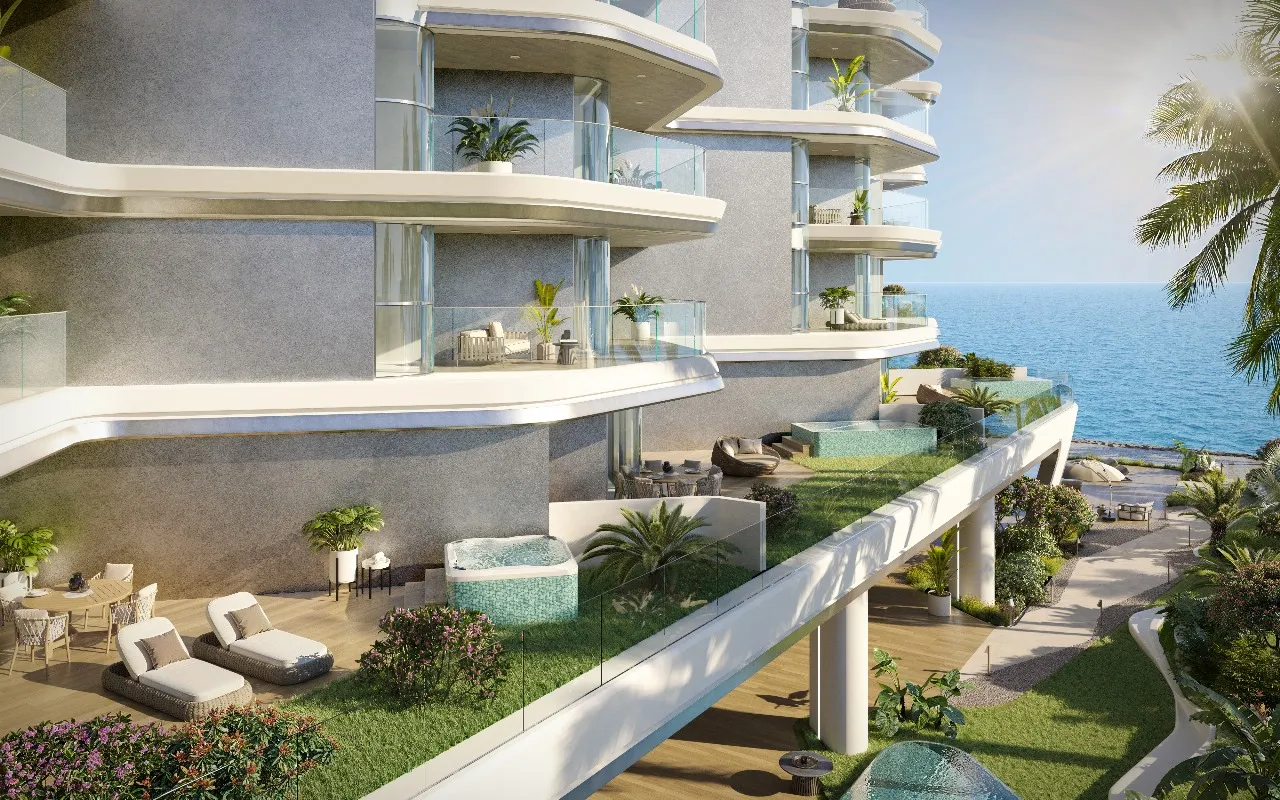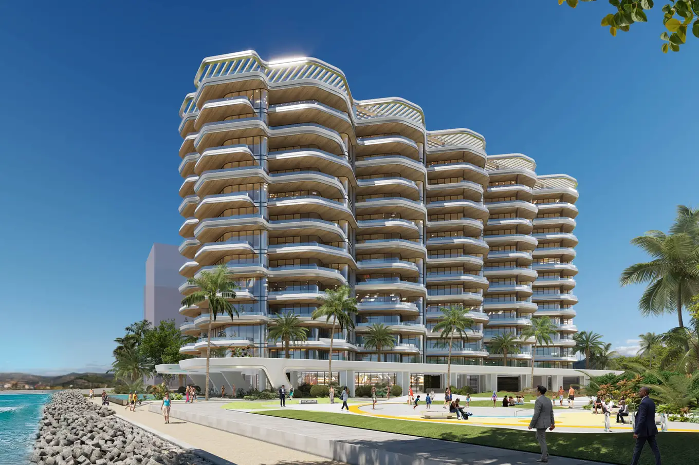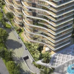 Sailboat-inspired architecture and waterfront views. Premium amenities (gym, indoor pool, kids’ areas, BBQ area, landscaped gardens, jacuzzi & steam, yoga room)