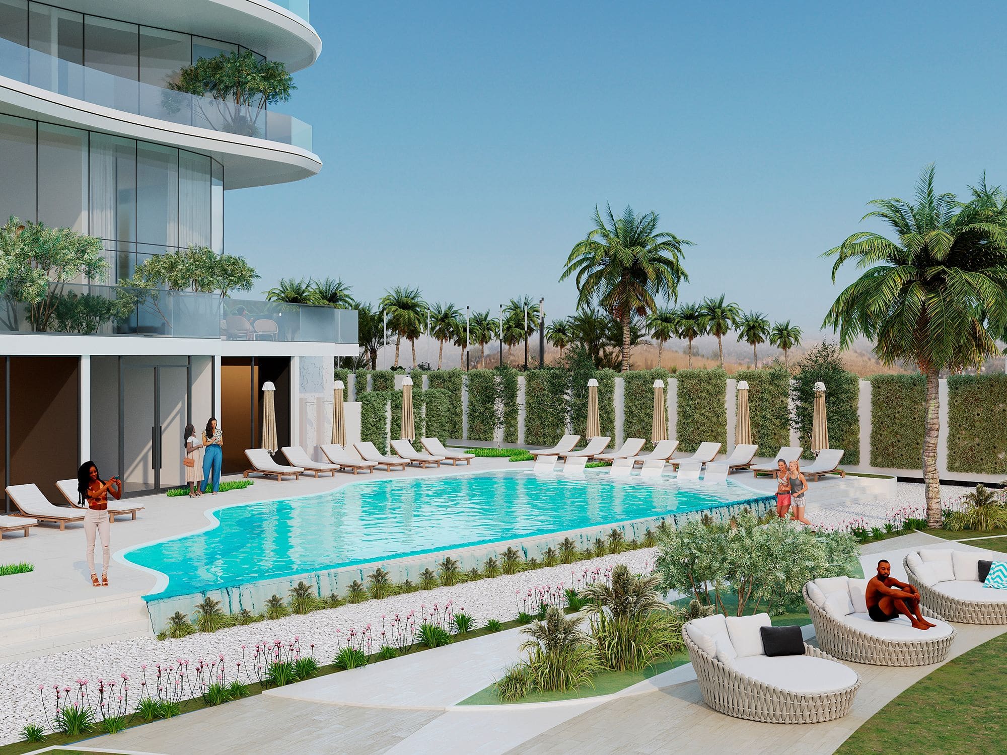 Lifestyle amenities including swimming pool, gym, and landscaped areas