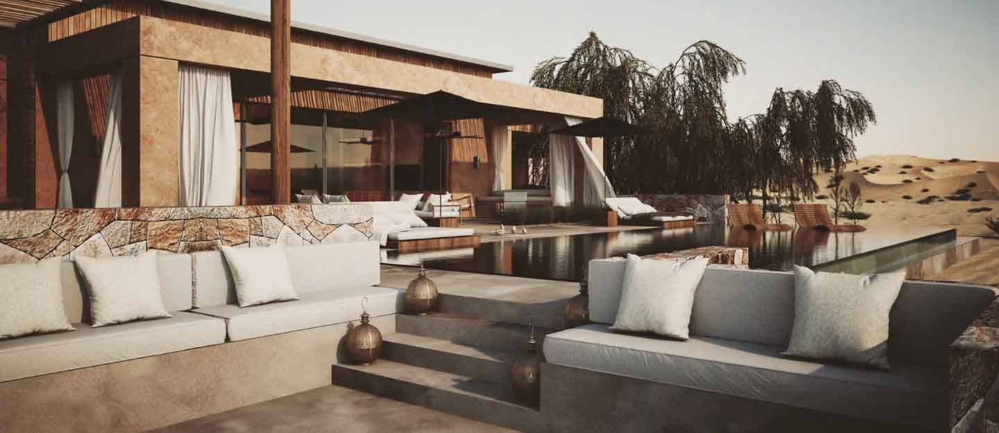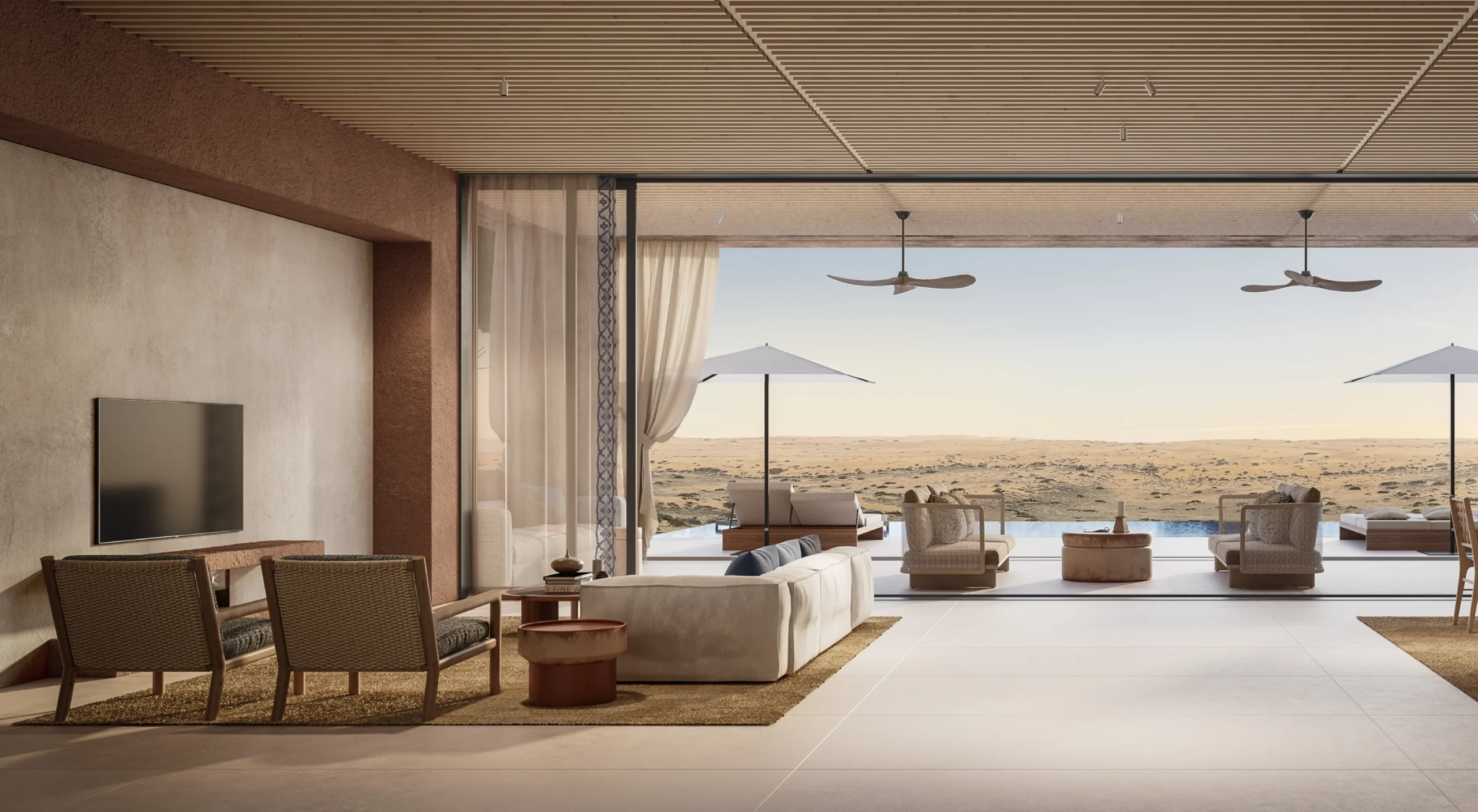 Limited collection: commonly cited as ~35 villas, supporting scarcity-driven premium value. Branded lifestyle positioning adjacent to The Ritz-Carlton Al Wadi Desert hospitality offering (spa, dining, experiences).