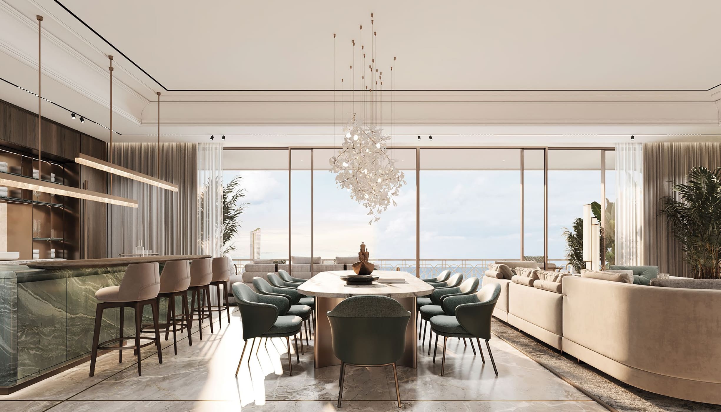 Signature residential amenities: private lounge, business centre, library, cigar lounge, wine lockers/cellar, cinema lounge, sports simulation, longevity spa/fitness, concierge & PRO services.